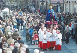 Unter Dauerregen aber mit neuem Bischof - Palmsonntagsprozession in Heiligenstadt 2015