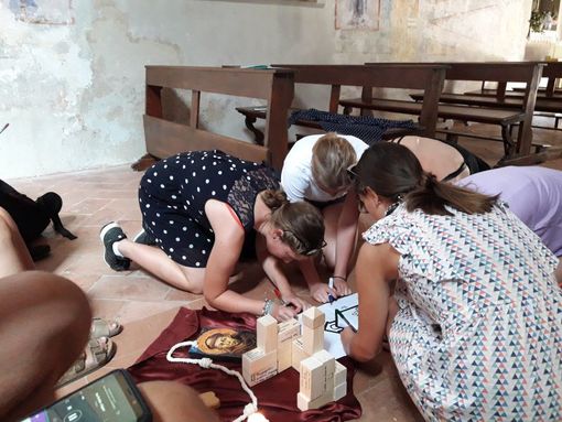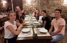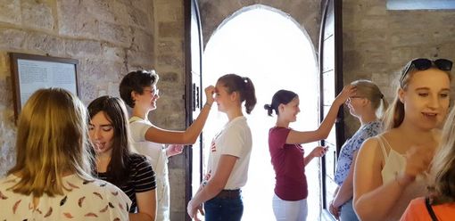 Der Tag begann nach einem späten und entspannten Frühstück mit einer kurzen Besinnung in der Stalletta, einem Oratorium, das sich an der Stelle befindet, an der Franziskus geboren wurde. Vor der Chiesa Nova beschäftigte die Gruppe das Verhältnis des Heiligen zu seinen Eltern, und in der Kirche erfuhren die Teilnehmer ein erstes Mal, wie durchdacht Bau- und Bildprogramm einer Kirche sein kann. Anschließend entführte die Reiseleiterin sie auf der Piazza in das muntere Treiben des jungen Francesco Bernardone im Kreis seiner Freunde, aber auch in die römische Vergangenheit und den heiligen Tempelbezirk, der sich einstmals 3 m unter der heutigen Piazza befunden hat. Der restliche Vormittag führte die Schülerinnen in Zweiergruppen in ganz neue Erfahrungen und Begegnungen, indem sie zwei "Challenges" zu bewältigen hatten.