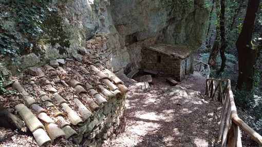 Am Nachmittag suchte die Gruppe die Einsiedelei der Carceri auf. Das ist eine Waldschlucht etwas oberhalb von Assisi. Hierher zogen sich Franziskus und seine ersten Brüder oft zurück, um in Felsspalten oder schnell aufgeschichteten Grotten unabgelenkt meditieren und beten zu können. Es hätte der aufgestellten Hinweisschilder, die um Schweigen bitten, nicht bedurft. Der Weg in den Walddom, der sich hinter dem Eingangstor auftut, gebietet von selbst ehrfürchtiges Schweigen. Und das Heiligtum hängt wie ein Vogelnest in der Felswand der Schlucht, nichts möchte hier die Ruhe in ihrem Gleichgewicht stören. Gerne tauchten die Schülerinnen in die Oase der Stille ein.
