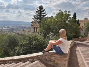 Am Abend treffen sich alle wieder zum Vorabendgottesdienst in Santa Chiara, zum Pizzaessen in La Lanterna und zu einem letzten Gelati auf der Piazza. Der Blick zurück auf die vergangene Woche bleibt an vielen "magischen Momenten" hängen: Als sich zum ersten Mal bei der Anfahrt von Perugia her die Stadt auf dem Ausläufer des Monte Subasio vor ihren Augen erhob, der Ausblick von der idyllischen Dachterrasse der Casa Bigini, der Sonnenuntergang und das Picknick auf der Rocca, die Ruhe in San Damiano oder in der Einsiedelei der Carceri, aber auch der nächtliche Ausflug zur Modenschau in Santa Maria degli Angeli und der Fußweg zurück in die Stadt. Eigentlich wäre alles und jedes einzelne zu erwähnen, stellen die Mädchen fest, denn "alles, was wir gemacht haben, war schön, weil wir es miteinander gemacht haben - gekocht, gespült, gegessen, Pläne geschmiedet und Programm gestaltet."