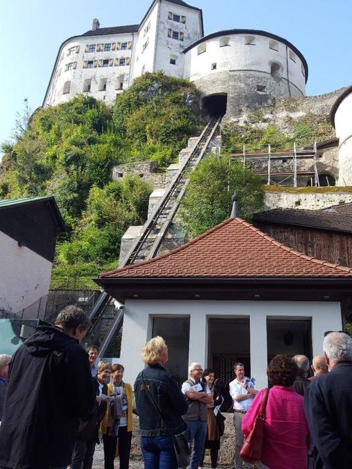 Nach den interessanten Ausführungen zur jahrhunderte alten Geschichte dieses beispiellosen Ortes, ließen wir uns im Innenhof der Festungswirtschaft mit einem gutbürgerlichen Mittagsmenü verwöhnen. So gestärkt, folgte am Nachmittag das Kennenlernen der schmucken Altstadt von Kufstein. Vom Oberen Stadtplatz, mit den Baudenkmälern im Jugendstil, über den revitalisierten Unteren Stadtplatz zogen wir hinunter zum Inn und über die Römerhofgasse zum urigen Auracher Löchl. Einem Traditionsgasthaus, dass weit über die Grenzen für seine tolle Atmosphäre bekannt ist. Hier ließen wir den Tag mit einem gemeinsamen Abendessen ausklingen.