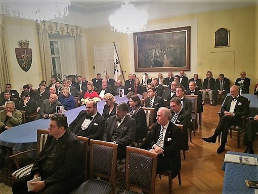 Anlässlich des gemeinsamen Kapitels der Grabesritter beziehungsweise Konveniats des Deutschen Ordens kam es zu einem regen Austausch zwischen beiden Gemeinschaften. Allgemeiner Tenor: „Schön, dass wir zusammen sind.“ - Am Beginn des Abends stand die gemeinsame Messfeier in St. Elisabeth. Andreas Kaiser FamOT zelebrierte den Gottesdienst. Ihm zur Seite standen P. Peter Fiala, Provinzial P. Martin Pastrnak und Matthias Beck. Zum anschließenden Vortrag im Rittersaal des Deutschen Ordens mussten noch weitere Sessel aufgestellt werden.