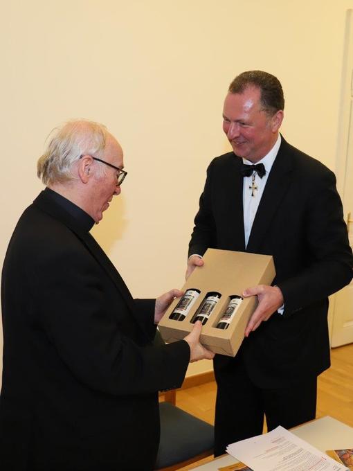 Die Komturei An Enns und Salzach sorgte zu Ehren des Althochmeisters auch dafür, dass aus den Südtiroler Weinanbaugebieten des Deutschen Ordens in Siebeneich eigens für diese Dankveranstaltung ein Festwein abgefüllt wurde: Ein Merlot und ein Weißburgunder mit der Aufschrift „Weingut Deutschorden Siebeneich A.D. 1234“ das Wappen des 65. Hochmeisters des Deutschen Ordens am Etikett zeigend.