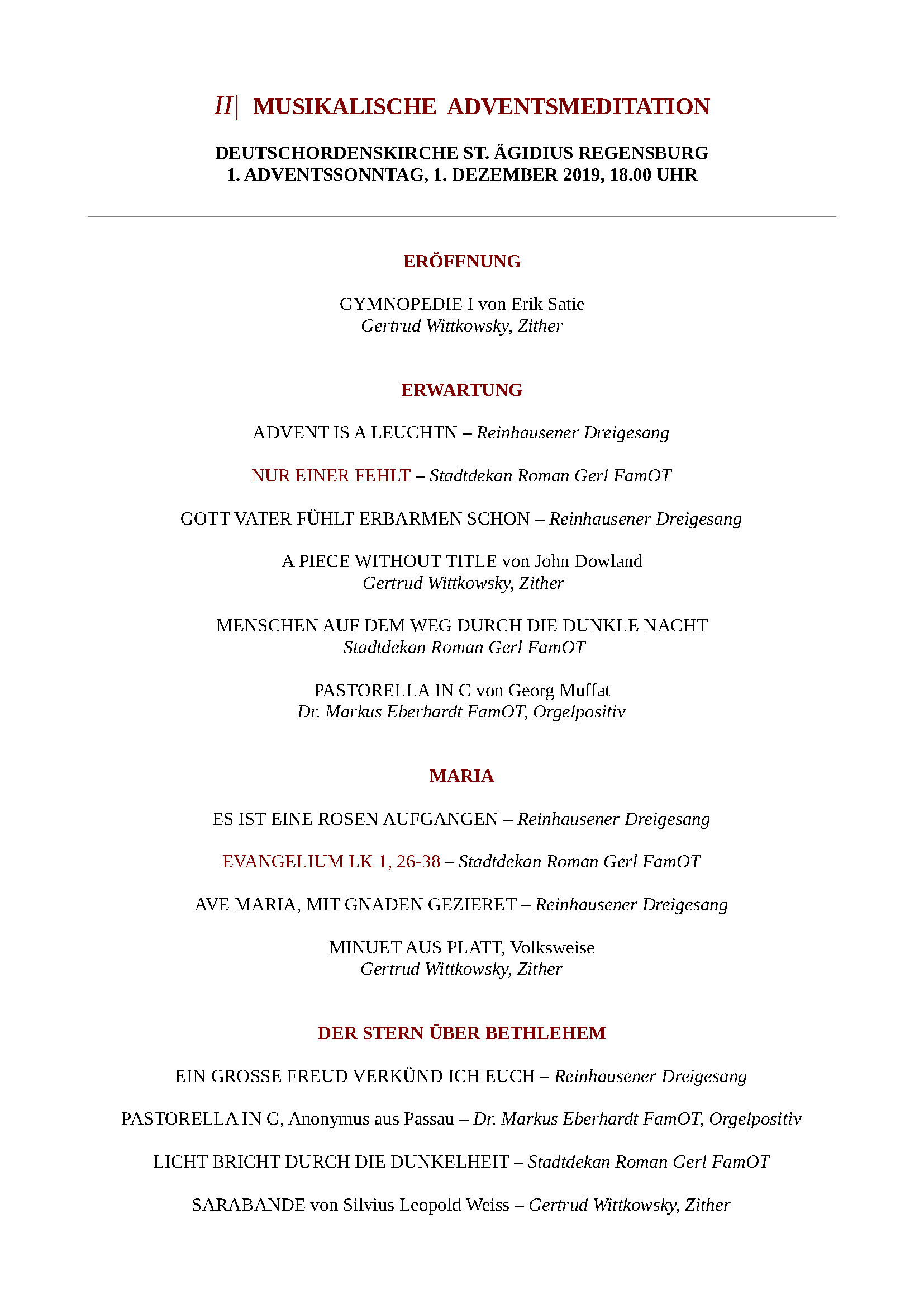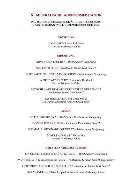 Rund 70 Confratres, Kandidaten und Gäste nahmen an der anschließenden Musikalischen Adventsmeditation teil, die Kirchenmusikdirektor Thomas Löffelmann FamOT vorbereitet hatte.