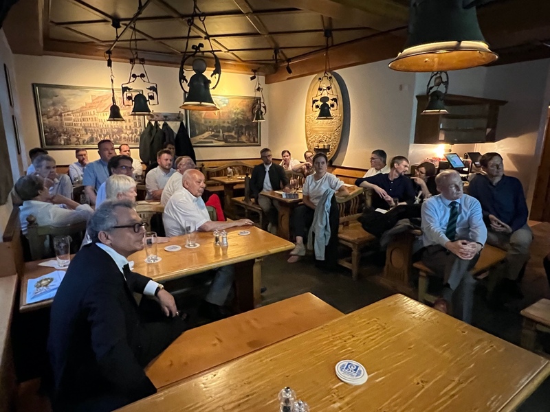 Im Anschluß an die geistliche Vergegenwärtigung der Ursprünge sorgte P. Jörg Eickelpasch OblOT, Leiter der Seelsorge in den Ordenswerken des Deutschen Ordens, in Anwesenheit SE des Hochmeisters des Deutschen Ordens, Generalabt Frank Bayard, des neugewählten Balleimeisters und Deutschherrenmeisters Herrn Thomas Jünger, des Balleimeisters An der Etsch und im Gebirge, Herrn Andreas von Möhrl und weiterer Balleivorstände, dann in der gemütlichen Atmosphäre eines Traditionsgasthauses neben der Frauenkirche für die Verheutigung des Ursprungscharismas des Helfens und Heilens. Bis zu 35 Familiaren und Gäste lauschten gespannt dem Vortrag über das Wirken der Seelsorge in den Ordenswerken des Deutschen Ordens. „Wir schenken Zeit“ ist das Leitmotto dieses segensreichen Wirkens, das viele Menschen erst wieder die ihnen als Menschen zustehende Würde erfahren läßt. Hierbei sieht das Seelsorgeteam weder auf Herkunft, noch auf Religion der Patienten und Bewohner, sondern allein den bedürftigen Menschen und schafft so vielfach erst den Boden, auf dem Achtung, Selbstliebe Vertrauen und auch der Glaube wieder gedeihen können. P. Jörg bezog in seinen Vortrag Familiaren und eine Mitarbeiterin aus der Seelsorge ein, die persönlich von ihren Erfahrungen in der Seelsorge und von der Teilnahme an Wallfahrten mit Bewohnern der Einrichtungen berichteten. Bemerkenswert war, daß die Familiaren, die als Schenker von Zeit angetreten waren, sich als Beschenkte durch die Dankbarkeit und Zuneigung der Bewohner wiederfanden.