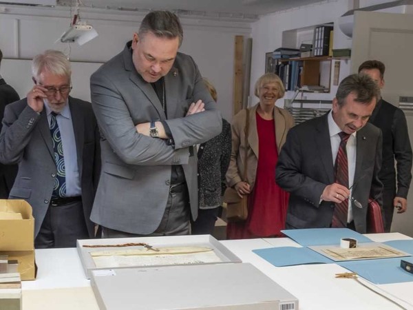 Eine Führung durch das Geheime Staatsarchiv wurde von Dr. Johannes Götz und weiteren Mitarbeitern nach der Begrüßung durch die Archivdirektorin Ulrike Höroldt durchgeführt: Ausstellung „Auch Geheime Archive sehnen sich nach Licht – 100 Jahre Geheimes Staatsarchiv in Dahlem“, ferner Ansicht ausgewählter Exponate zur Geschichte des Deutschen Ordens, Blick in die Restaurierungsabteilung, Unterbringung des Ordensbriefarchiv und anderes mehr.