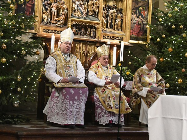 Die Feierlichkeiten zum Gründungsfest des Deutschen Ordens begannen heuer am Samstag, 1. Februar 2025, mit einer Pontifikalvesper mit Hochmeister Frank. Der Bischof der Diözese Bozen-Brixen Dr. Ivo Muser und Prior P. Christian Stuefer konzelebrierten. Am Beginn der Vesper stand eine Anrufung Gottes über das Licht – „Du bist das Licht, auch die Finsternis ist für dich nicht finster“. Hochmeister Frank ging in seiner Homilie auf die drei wesentlichen Punkte der Lesung (Apg 2,44–47 „Und alle, die gläubig geworden waren, bildeten eine Gemeinschaft und hatten alles gemeinsam“) in Zusammenhang mit dem Deutschen Orden ein: Glaube, Gemeinschaft, Nachfolge. Ein wesentlicher Aspekt unseres Glaubens ist, dass er keine theoretische Überlegung ist, sondern sich nur dann entfalten kann, wenn er auch einen praktischen Niederschlag im Leben hat. Glaube befähigt die Menschen zu Großem, siehe Elisabeth von Thüringen. Im Unterschied zu anderen Orden (Benediktiner, Franziskaner) waren beim Deutschen Orden keine Einzelpersonen Gründer, sondern eine Gemeinschaft. Brüder, Schwestern und Familiaren sind gemeinsam unterwegs, Gemeinschaft im Glauben hat Strahlkraft nach außen. Im Wollen Christus nachzufolgen sollen wir die Liebe Gottes durch uns hindurch strahlen lassen, um dies auch weitergeben zu können. Das Gründungsfest ist eine Erinnerung an eine Idee von Menschen vor 835 Jahren im Elend und Sterben vor Akkon, die bis heute gelebt wird. Diese ist zeitlos, weil es immer Menschen geben wird, die des Helfens und Heilens bedürfen, aber auch jener Menschen, die Hoffnung und Liebe unter Menschen bringen, nicht nur durch Worte, auch durch Taten.