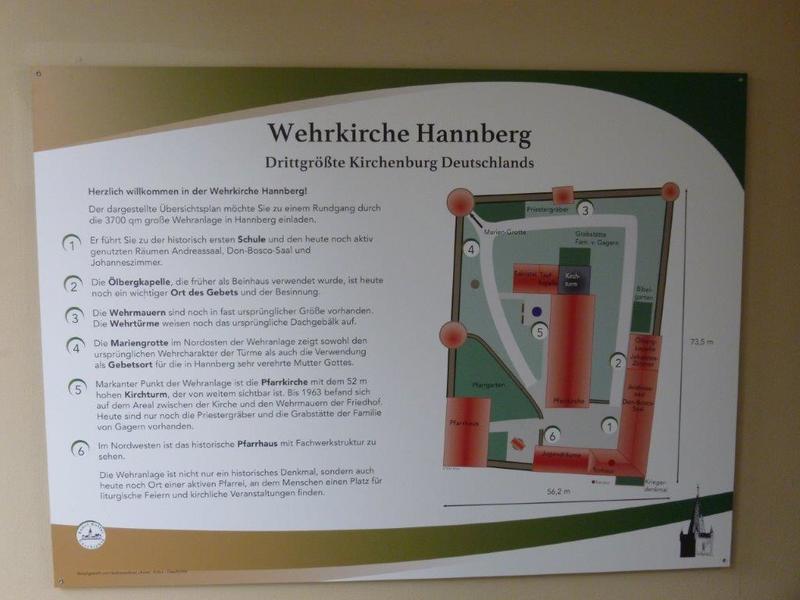 Geführt wurden die Teilnehmer dabei durch das Pfarrgemeinderatsmitglied Herr Willert, der dies außerordentlich sachkundig und lebendig tat. Die Wehrkirchenanlage Hannberg gilt als die drittgrößte Kirchenburg Deutschlands. Die erste urkundliche Erwähnung des Ortes Hannberg stammt aus dem Jahr 1065 anlässlich einer Schenkung des Bischofs Gunther von Bamberg an sein Domkapitel. Im Ersten Markgrafenkrieg 1449/50 wurden Hannberg und der gesamte Seebachgrund weitgehend verwüstet, was dazu führte die seit 1425 voll ausgebaute Kirche als Wehrkirche zu befestigen (1461/64). Die gesamte Anlage ist aus dieser Zeit weitgehend in ihrer ursprünglichen Form erhalten und verfügt über eine geschlossene Ringmauer. Besondere Kennzeichen sind die fünf integrierten Verteidigungstürme mit Schießscharten nach außen, wie auch nach innen, da die Ringmauer über keinen Umgang verfügt. Unterstützt wurde der Bau der Anlage finanziell und handwerklich durch die freie Reichsstadt Nürnberg, da das Domkapitel den Ort an einen Nürnberger Patrizier verpfändet hatte. Die Kirche selbst besitzt spätgotische Steinaltäre und Skulpturen der hl. Jungfrauen Katharina u. Margareta (1475), sowie Barbara (1485) und die zentrale Figur der Muttergottes mit dem Jesuskind (1485). Darüber hinaus sind mehrere Skulpturen aus dem Barock aus der Zeit um 1720 vorhanden, die aus Nürnberger Schnitzerwerkstätten stammen dürften.