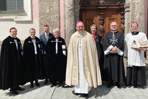 Am Abend des Hochfestes Herz-Jesu versammelt sich stets das offizielle Tirol in der Innsbrucker Jesuitenkirche um das Gelöbnis des Landes gegenüber dem Hlst. Herzen Jesu feierlich zu erneuern. Zahlreiche Vertreter von Politik, Kirche und Gesellschaft sowie Abordnungen, darunter auch die Familiaren der Komturei am Inn und Hohen Rhein, wohnten dem von Diözesanbischof Hermann Glettler celebrierten Pontifikalamt bei. Auch wenn heuer durch die noch geltenden Abstandsregeln der Charakter der Feier stark unter Einfluss der Corona-Pandemie gestanden ist, so war allen Mitfeiernden dennoch die Erleichterung anzumerken dieses für Tirol doch so denkwürdige Fest in würdigem Rahmen begehen zu können.