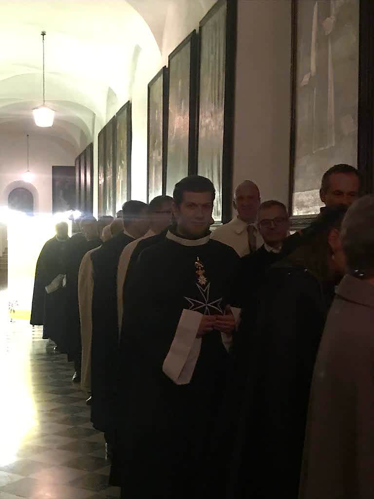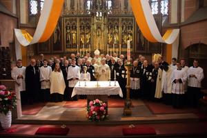Das Hochfest Christ Himmelfahrt am 30. Mai 2019 wurde in Deutschorden in Frankfurt-Sachsenhausen besonders feierlich begangen. Seine Exzellenz Generalabt Frank Bayard OT stand als Hauptzelebrant dem Pontifikalamt vor. Der Hochmeister war am Morgen mit einer großen Reisegruppe der Ballei Österreich unter Führung des Balleimeisters Prof. MR Dr. Rudolf Müller FamOT aus Wien angereist. So war das Hochamt für die Confratres aus Österreich ein guter spiritueller Start in die Exkursion „Auf den Spuren des Deutschen Ordens in der Ballei Hessen“.