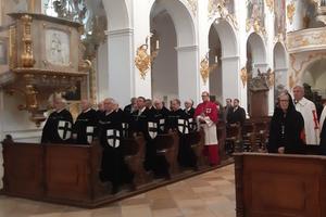 Zahlreiche Familiaren der Komturei „An der Donau“ trafen sich zur Marienmesse in der Stiftskirche Unserer Lieben Frau zur Alten Kapelle in Regensburg. Der Einladung folgten auch die Ritter vom Hl. Grab zu Jerusalem. Die Stiftskirche Unserer Lieben Frau zur Alten Kapelle am Alten Kornmarkt in Regensburg ist die Hauptkirche des gleichnamigen Kollegiatstifts, des ältesten noch bestehenden Kollegiatstifts in Bayern, und die älteste Kirche Regensburgs. Kunstgeschichtlich gesehen gilt sie als eine der bedeutendsten Rokokokirchen Bayerns.