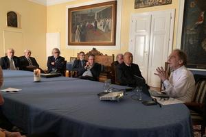 Das erste Conveniat der Komturei „An Weser und Ems“ in diesem Jahr fand am 16. Februar im Haus Mariengrund in Münster statt. Es begann mit einem Vortrag von P. Jörg Eickelpasch Obl. OT über „Das Ordenscharisma ‚Helfen und Heilen‘ in den Ordenswerken der deutschen Brüderprovinz“. Als Leiter der Seelsorge des Deutschen Ordens berichtete er anschaulich und ausführlich über die Vielfalt der Ordenswerke. Er erinnerte zunächst an die Anfänge des Deutschen Ordens: Auf dem dritten Kreuzzug hatten Bremer und Lübecker Kaufleute vor Akkon aus den Segeln ihrer Schiffe ein Feldspital errichtet sowie Kranke und Verwundete versorgt und gepflegt. Helfen und heilen ist das Gründungscharisma des Deutschen Ordens.