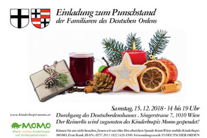 Auch heuer fand wieder am Samstag 15. Dezember der Punschstand der Familiaren der Ballei Österreich des Deutschen Ordens im Durchgang des Deutschordenshauses, 1010 Wien, Singerstrasse 7, in der Zeit von 14 bis 19 Uhr statt. Die Besucher konnten sich bei Punsch, Weihnachsbäckerei, Schmalz- sowie Liptauerbroten und weihnachtlicher Musik während der Weihnachsteinkäufe laben und innerlich aufwärmen.