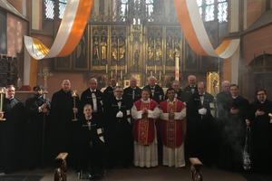 Vergangenen Sonntag feierten die Familiaren der Komturei „An Rhein und Main“ das Ordensfest des Heiligen Georg mit einer feierlichen Messe in der Deutschordenskirche in Frankfurt-Sachsenhausen. Der Ordenspatron als Sieger über das Böse war auch Gegenstand der Predigt von Pater Jörg Weinbach OT. Die legendarischen Überlieferungen zeugten von der Lebenshingabe, dem Einsatz für den Glauben und von der Unzerstörbarkeit des Lebens in Christus.