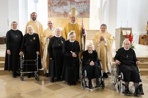 In diesem Jahr konnten nach den langen Beschränkungen durch Corona die Professjubiläen der Schwesternprovinz Deutschland im Provinzhaus St. Nikola zu Passau wieder gemeinsam gefeiert werden. Sechs Schwestern der Schwesternprovinz Deutschland konnten diesmal ihr Professjubiläum feiern und ihr Gelübde erneuern. Besonders beeindruckend empfanden wir dabei, das sehr seltene 75. Professjubiläum von Sr. Klementine Kretschmer miterleben zu dürfen. Sr. Klementine ist mit 97 Jahren nicht nur die lebensälteste Schwester in der deutschen Provinz, sondern auch die mit der längsten Zugehörigkeit zum Deutschen Orden. Vor 65 Jahren legten Sr. Eduarda Eder, Sr. Fridolina Hackenberg und Sr. Huberta Kolb und vor 60 Jahren Sr. Siegfrieda Przybilla und Sr. Engelberta Schalke ihre erste Profess ab.