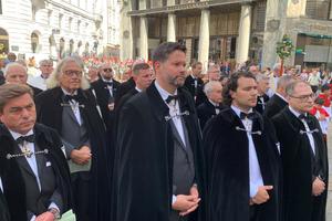 Nach zweijähriger Pause, fand heuer wieder das Hochfest des Leibes und Blutes Christi/Fronleichnam mit einer eucharistischen Feier im Dom zu St. Stephan und anschließender traditioneller Prozession durch die Innenstadt statt. Der Wiener Erzbischof Kardinal Christoph Schönborn zelebrierte die Hl. Messe, der Hochmeister des Deutschen Ordens, Gen. Abt Frank Bayard und einige Mitglieder des Domkapitels konzelebrierten. Die Familiaren der Ballei Österreich des Deutschen Ordens nahmen wieder mit einer starken Abordnung an den Feierlichkeiten teil, ebenso Vertreter des Souveränen Malteser Ritter-Ordens und des Ritterordens vom Heiligen Grab zu Jerusalem.