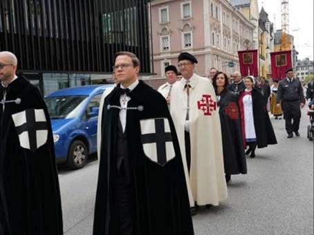Auch Fronleichnam 2022 verlief etwas anders wie schon die letzten Jahre zuvor. Da der Dom St. Jakob innen renoviert wird und bis November geschlossen bleibt, fand die Festmesse, zelebriert von Bischof Hermann Glettler, in der Jesuitenkirche statt. Zeremonienmeister wie immer bei Hochfesten - Confrater Armin. Teilnehmer von uns: Andreas, Dan, Martin, Ferdinand Natürlich ebenfalls vertreten waren die Malteser und die Grabesritter.