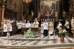 Die Feier des Patroziniums zu Ehren des Hl. Karl Borromäus fand am vergangenen Sonntag, 7. November 2021, in der Karlskirche, Wien IV statt. Hauptzelebrant war der Hochmeister des Deutschen Ordens, Generalabt Frank Bayard OT, konzelebriert hat der Rektor der Karlskirche, P. Marek Pucalik O.Cr. Auf Einladung des Ritterlichen Kreuzherrenorden mit dem Roten Stern nahm eine Abordnung der Familiaren-Ballei Österreich des Deutschen Ordens unter Leitung von Balleimeister Rudolf Müller an dieser Festmesse teil.
