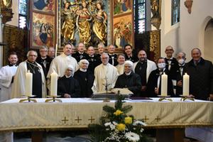 Aus besonderem Anlass, nämlich dem 70. Professjubiläum von Sr. Monika Madleniger, Provinzoberin der Schwestern-Provinz Österreich, konnte am Samstag, 30. Oktober 2021, in der Deutschordenskirche zur Mutter Gottes und zum Hl. Blasius in Friesach, Kärnten, eine Hl. Messe gefeiert werden. Es zelebrierte S.E. Diözesanbischof Dr. Josef Marketz unter Konzelebration von S.E. Hochmeister Generalabt MMag. Frank Bayard OT, Propst Dechant Mag. Leszek Zagorowski, Pfarre Friesach, Prior Mag. KR Karl Seethaler OT und P. Miroslav Vana OT. Seitens der Familiaren der Ballei Österreich waren Balleimeister Prof. Dr. Rudolf Müller, die Komture Dr. Arno Lerchbaumer/Komturei An Mur und Mürz sowie Robert Burghart/Komturei An der Drau und zahlreiche Confratres vertreten.
