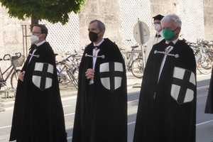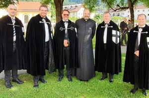 Etwas außerhalb der Norm, beging das offizielle Tirol das Herz-Jesu-Gelöbnis dieses Jahr nicht in der Jesuitenkirche in Innsbruck, sondern dem besonderen 225-zigjährigen Andenken gemäß im Stift Stams im Oberland. Ein geschichtsträchtiger Ort mit einer sehr engen Verbindung zum Feieranlass. Denn das Herz-Jesu-Gelöbnis von 1796 auf Grund der Bedrohung durch die näher rückenden Napoleonischen Truppen geht auf den damaligen Abt des Stiftes zurück. Innsbrucks Bischof Hermann Glettler, der Abt des Stiftes German Erd und unser Mitbruder, der Superior des Lana Convents, Pater Christoph Waldner OT zelebrierten das Hochamt. Der Landesübliche Empfang durch die zahlreich angetretenen Schützenkompanien für die Landtagspräsidentin und den Landeshauptmann vor der beeindruckenden Kulisse des altehrwürdigen Stiftes schloss den feierlichen Akt.