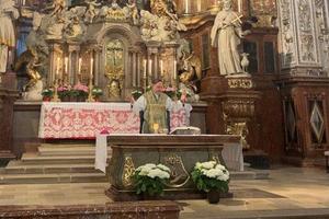 Mit den weiteren Öffnungen in der Covid-19-Pandemie konnte die Ballei Österreich der Familiaren des Deutschen Ordens endlich wieder ein Konveniat mit einem Vortrag durchführen. Dieses fand am Freitag, 28. Mai 2021, wieder in der Franziskanerkirche Wien I statt. S.E. Hochmeister Gen. Abt Frank Bayard zelebrierte die Hl. Messe, an der Orgel spielte in bewährter Weise Florian Harg und nach langer Zeit konnten wir wieder gemeinsam aus dem Gotteslob singen. Hochmeister Frank ging in seiner Predigt auf das Tages-Evangelium Mk 11, 11-25 ein.