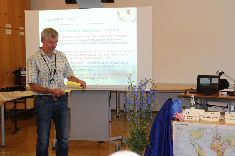 Das große Thema, das Politik und Gesellschaft momentan bewegt, ist der Klimaschutz. Darum lud Provinzoberin Sr. Maria-Franziska Josef Holzbauer, den Umweltreferenten der Diözese Passau, zu einem Vortrag ein. Anschaulich zeigte Herr Holzbauer die Ursachen der ökologischen Krise auf und machte mit der Enzyklika "Laudato si - über die Sorge für das gemeinsame Haus" von Papst Franziskus aufmerksam auf die Verantwortung der Kirche und klösterlicher Gemeinschaften für einen Kurswechsel. Die Schwestern erkannten, dass hier alle Menschen in einem Boot sitzen. Das Boot begleitete daher als Symbol auch durch das anschließende Kapitel und die Wahl der Provinzleitung.